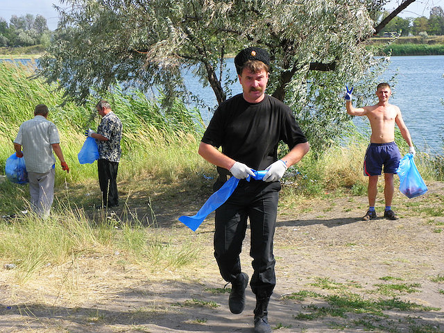 В наше время, к сожалению, казакам приходится не героическими походами заниматься, а беспокоится о злободневных проблемах. Одна из них – засорение окружающей среды, которое происходит по вине своих же граждан. Областной казачий круг решил не стоять в стороне, а принять участие в очищении окружающей среды. Казаки принялись за уборку территорий возле так называемого «Голубого озера» и насобирали целый «ЗИЛ» мусора.
