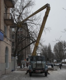 В зимний период опасность для пешеходов составляет не только мороз и гололед. Часто вес снега и льда настолько отягощает старые ветки, что они стают еще опаснее, чем сосульки. Коммунальщики Днепродзержинска начали работы по ликвидации старых веток, которые угрожают на центральных улицах пешеходам города.