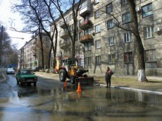 На улице Галины Романовой м Ковалевича в Днепродзержинске ведутся аварийные работы по устранению порыва воды. Вода уже залила эти улицы.