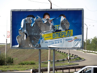 Природа не осталась в долгу за уничтоженный регионалами билборд с бабушкой и котом и внесла коррективы в политическую рекламу многих партий и кандидатов. Пронесшийся в Днепродзержинске ураган практически уничтожил десятки рекламных щитов таких кандидатов как Гузенко (ПР), Храпов (КПУ), «Украина вперед», Партии регионов и других.