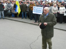 В два часа дня митингующие собрались с транспарантами перед входом в горисполком. Перед ними выступил руководитель профсоюзной организации предприятия Василий Кисилев. В своей речи он выразил требования к властям и руководству налоговой инспекции. По его словам, несколько дней назад банк ошибочно перечислил 430 тысяч гривен на счет налоговой инспекции. Эти деньги, по его словам, должны были пойти на выплату задолженности по заработной плате рабочим. А начальник налоговой инспекции Днепродзержинска возвращать их не хочет. Прошелся критикой Василий Кисилев и в адрес министерства энергетики, которое, по его словам, убивает предприятие, являющееся одним из пяти существующих в мире заводов по производству циркония.