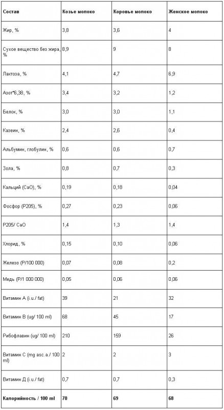 Как видно на следующей таблице, козье молоко обладает многими преимуществами в составе перед коровьим: