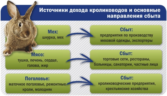 Продажа мяса кролика — не единственный источник дохода фермеров. Например, шкурки кроликов используют для изготовления обуви. Также ценят мех животных, который как в натуральном виде, так и в перекрашенном под нутрию, выдру, соболя и песца идет на пошив шуб, шапок и другой меховой одежды. «Кролик полностью разделывается. Мясо мы продаем в торговые сети, а шкурки сбываем компаниям, которые направляют их на последующую переработку в Китай и Европу», — объясняет Андрей Бущан, предприятие которого ежемесячно производит в среднем в пределах 17,6 тонн мяса при поголовье в 50 тыс. особей.