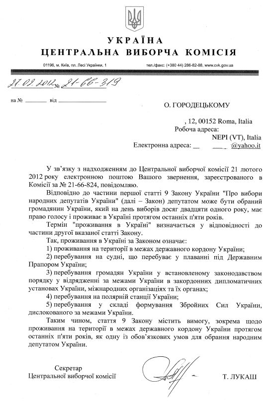 І підписане не ким не будь – а теперішнім секретарем ЦВК пані Тетяною Лукаш.