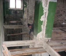 В общежитии на проспекте Аношкина, 112 в Днепродзержинске начались ремонтные работы. Общежитие было отселено в 2011 году. Городская власть мотивировала отселение жильцов тем, что здание общежития непригодно для проживания и разрушается. Однако, недавно в опустевшем здании начались таинственные работы. Судя по деревянным отходам производства, полностью убирается «начинка» первого этажа.