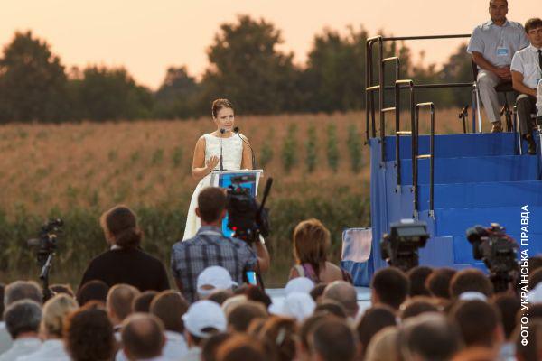 Він пообіцяв, що 4 роки гості зібрання зможуть гуляти тут вже не по голому полю, а по новому парку, який буде збудований тут після з’їзду. А «Україна вперед» звісно ж приведе до процвітання всієї України.