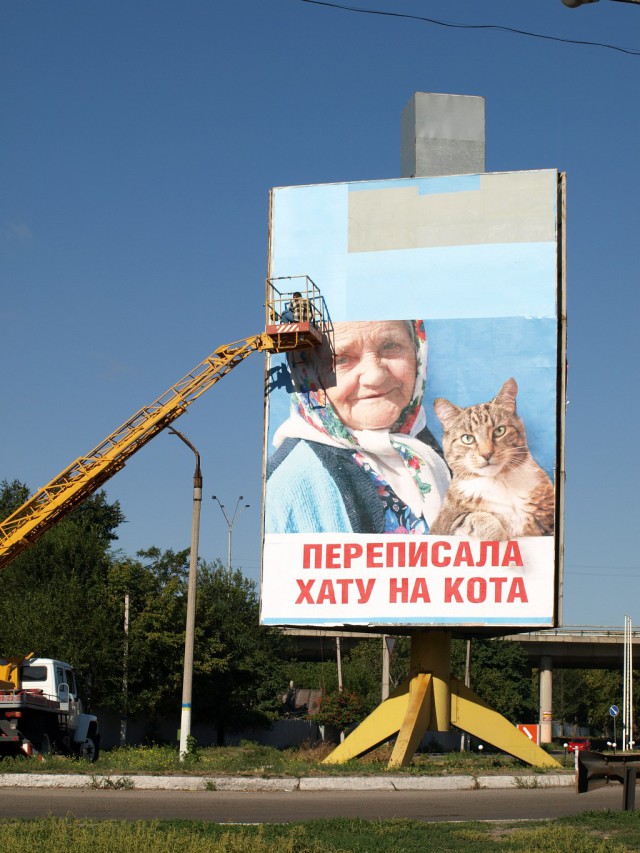 Плакат с надписью «Взнала, що внук голосував за регіони — переписала хату на кота» взорвал не только социальные сети, но и политическую элиту страны. Но долго жителям не удалось лицезреть политический креатив, так как сразу заклеили верхнюю часть борда, а затем и все изображение.