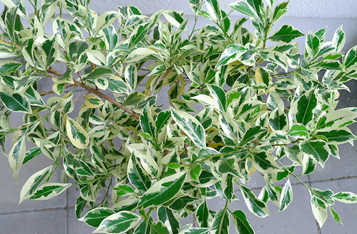 Еще более оригинальным растением для современного интерьера в нашем случае можно назвать и фикус Бенджамина. Это растение имеет необычную расцветку листвы, которая отлично сочетается с дизайном современных интерьеров. Некоторые листья растения полностью зеленые, другие – полностью белые, но большинство листочков имеют смешанную расцветку. Выглядит такое сочетание очень оригинально.
