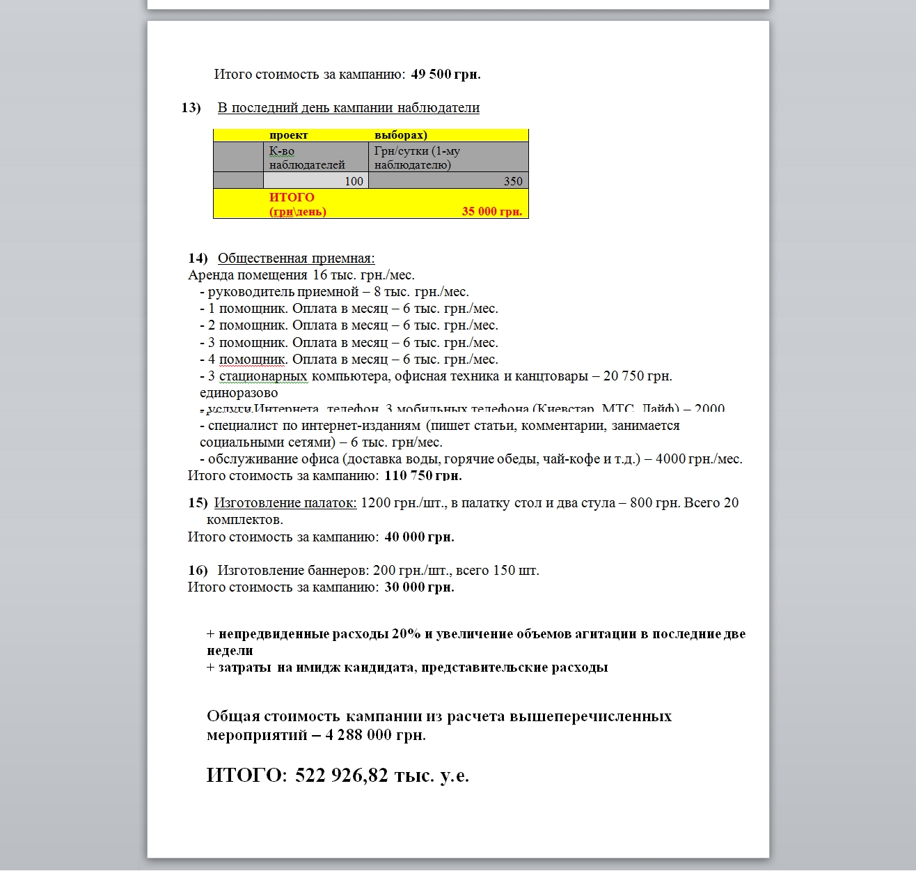 «Олег Валерьевич, это для Вас. Без учета СМИ, телевидения, прессы», — скромно протянула Ляшко счет на кампанию кандидатка. Изучив смету, становится ясно, что кроме этих денег Вика с легкостью справится еще с одним таким же бюджетом. Как выразилась экс-журналист, она в силах освоить бабло «и на СМИ, и на прессу».