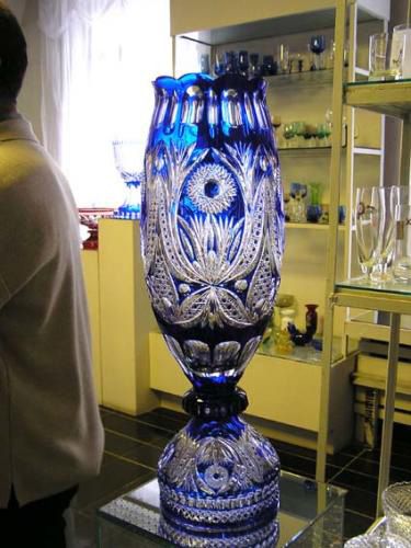 Выдувальщик — главная профессия на хрустальном заводе. Он стоит рядом с печью, макает в огонь длинную трубку, достает раскаленную стеклянную каплю и дует, пока капля не превратится в пузырь. Потом пузырю на трубке придается нужная форма, он застывает, и выдувальщик несколько раз сует его в печь, разогревает, поддувает, выравнивает. Действо это похоже на медленный грациозный танец: потому туристы и любили на него глазеть.