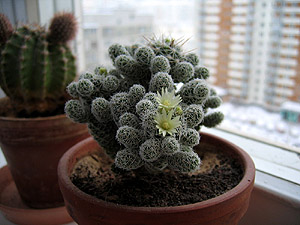 Что же делать при легкой степени обморожения кактуса? Не вносите «обмороженный» кактус сразу в теплое помещение, пусть постоит несколько дней при температуре около нуля. Потом кактус можно внести в помещение, где температура несколько выше, и лишь затем — в теплую комнату. Через 2-3 дня осторожно полейте кактус водой комнатной температуры, лучше с добавлением препарата для защиты растений. Весна и стремление к жизни, будем надеяться, сделают свое дело. Но не удивляйтесь, если ваш кактус несколько изменит точку роста и будет расти не основным стеблем, а, например, терминальной (макушечной) деткой.