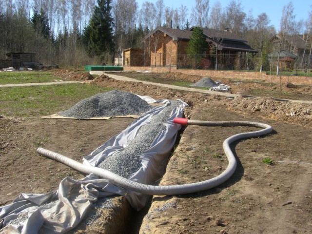 Проще всего выкопать траншеи с направлением в более нижнюю часть участка, и направить воду по трубам. Воду можно направлять в контейнеры или другие сосуды, после чего остается лишь избавиться от влаги и тем самым улучшить состояние почвы. Сами траншеи обычно засыпают щебнем или еще лучше – пленкой, которая позволит направлять воду вообще без всяких потерей.