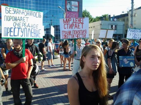 В центре города прошла массовая акция, посвященная памяти мотоциклиста Михаила Молчанова, который погиб при столкновении с машиной депутатской жены. Люди требовали справедливого наказания для жены депутата Селищева, которая является виновницей столкновения.