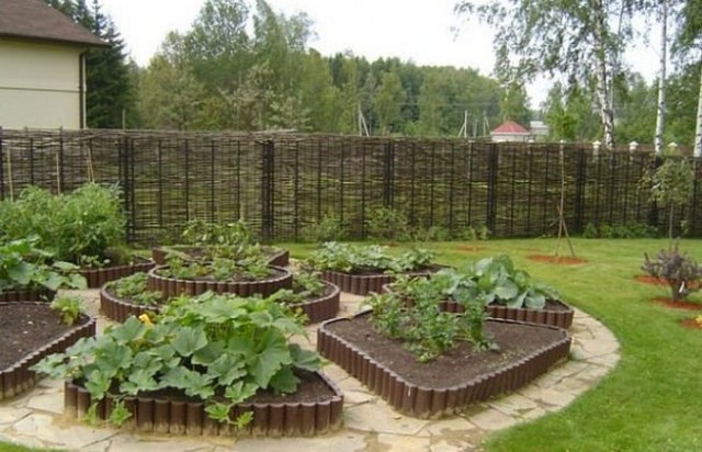 Обычно обустройство мини-грядок сопровождается созданием симметричной формы огорода, в которой имеется одна круглая центральная грядка, которая также выступает в качестве наивысшей точки огорода, а вокруг нее создаются так называемые «лепестки» — это все остальные грядки. На них можно размещать цветы, кустарники, а также основные овощные и прочие культуры.
