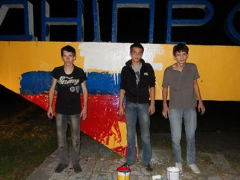 Теперь, видимо, у нанятых «художников» отпадет желание разрисовывать наши города российскими аквафрэшами и двуголовыми петухами. На днях активисты «Правого сектора» задержали людей, которые пытались покрасить надпись «ДНЕПРОПЕТРОВСК» в цвета российской государственной тряпки. Этих мерзавцев самих покрасили в столь любимые ими цвета, после чего их доставили в милицию (без каких-либо травм).