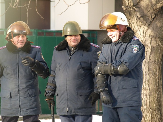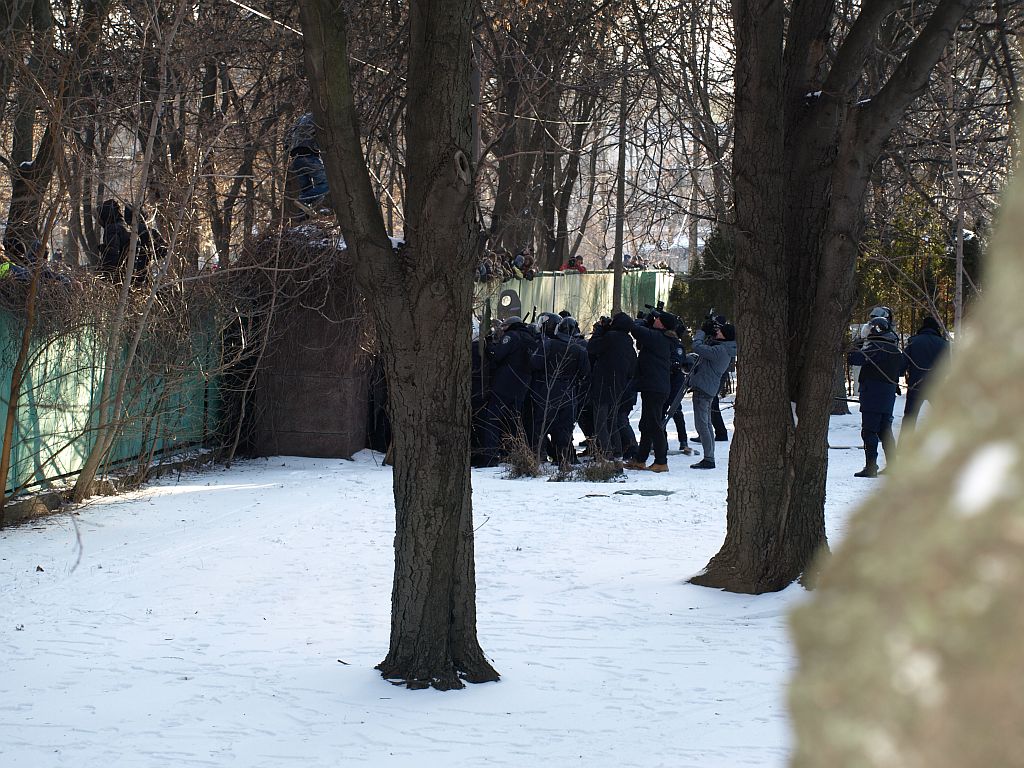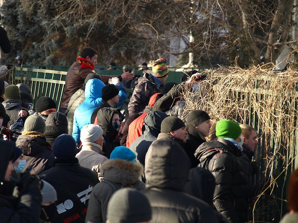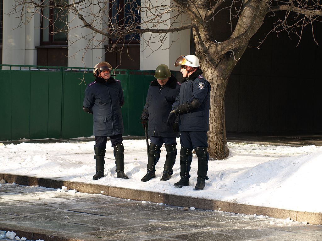 Надо сказать, что администрация «к штурму» была подготовлена заранее — накануне вечером насыпаны снежные баррикады, согнано большое количество милиции. На территории стояла пожарная машина и 2 машины скорой помощи. Милиционеры вели себя совершенно спокойно, улыбались, шутили снимали штурмующих на камеры и мобильные телефоны.