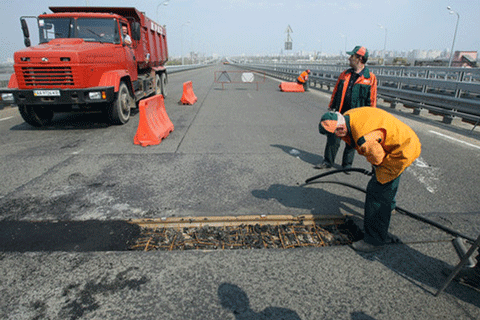 На мосту через реку Днепр сорвало металлическую крышку, которая накрывала термошов. Как оказалось, вернуть крышку на место и привести в порядок участок дороги некому.