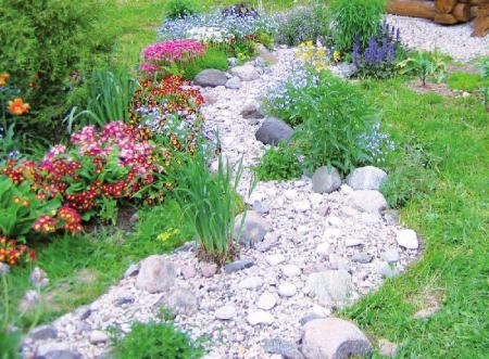 Кстати, сухие ручьи на время превращаются во вполне настоящие ручейки. Когда идет дождь сухой ручей выполняет важную функцию отвода воды от всех культур в саду, избыток влаги скапливается в желобе ручья и выводится за пределы участка, не застаиваясь. Таким образом, если обустроить сухой ручей на собственном участке правильно, то он может стать отличным средством для защиты участка от чрезмерной влаги.