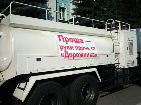 Рабочий коллектив коммунального предприятия «Дорожник» пикетировал сессию городского совета с лозунгами «Весна без Сафронова» и «Проша – руки прочь от Дорожника». Коммунальщики приехали под городской совет на технике предприятия.