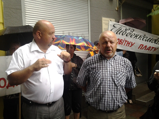 Около 100 сотрудников коммунального предприятия «Трамвай», в обеденный перерыв, вышли на акцию протеста к отделению «Пивденкомбанка». Рабочие требовали выплатить им заработную плату за апрель.