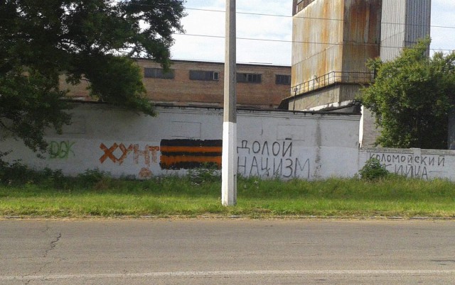 В листовках пишут, что армия не обеспечивается средствами защиты и посылает своих бойцов на верную смерть. На одном из домов, во всю его ширину, намалевали «колорадскую» ленту. Ограждение бывшей военной части было измалевано антиукраинскими лозунгами. Разрисовали также и сцену в городском парке культуры и отдыха. Там появились надписи: «Коломойский убийца», «Нет АТО», «Смерть фашистам» и множество других.