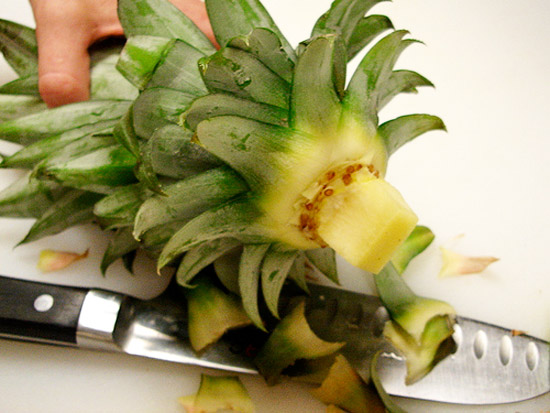 Одним словом, вам потребуется только сам «хохолок» плода, и чем свежее он, тем лучше, явно завядший хохолок уже наверняка не получится реанимировать. Подмороженный хохолок тоже сажать смысла нет, поэтому купленные ананасы зимой обычно не подойдут вам. Итак, верхушку ананаса нужно срезать острым и чистым ножом и поместить в темное место в комнатную температуру.