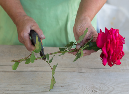 В первую очередь внимательно осмотрите подаренную розу. Если стебель сморщенный, листья вялые или подсохшие, то такой саженец явно не укоренится, лучше даже не тратить на него свое время. Другое дело – свежий стебель, плотный, здоровый, с упругими листьями, целыми шипами и так далее. Вот такой стебель имеет все шансы на укоренение. Теперь вам нужно решить – из какой части стебля сделать черенок? Верхняя часть не подходит, так как на ней почти не бывает почек, поэтому верхушку можете смело срезать и оставить ее вместе с бутоном – пусть он еще немного постоит и порадует глаз. А вот нижнюю часть и середину можно использоваться. В целом, большинство садоводов сходятся во мнении, что именно средняя часть стебля наиболее пригодна для черенкования. Хотя часть садоводов все же придерживается мнения, что нижняя часть, которая по природе привыкла быть связанной с корнем, имеет лучшие шансы на укоренение. Решать вам, но все же больше шансов по статистике оказывается у средней части стебля.