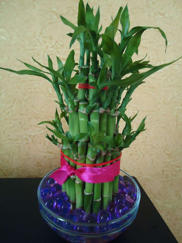 В целом стоит отметить, что бамбук счастья считается весьма неприхотливым растением. Ухаживать за ним и летом, и зимой – достаточно просто. Особенно удивляет в этом растении его способность развиваться в почве почти любого типа. Драцена Сандера способна расти в обычном черноземе, в песке, в торфе и даже просто в воде. Мало того, вы еще больше удивитесь, когда узнаете, что бамбук счастья способен отлично развиваться даже в гидрогеле – искусственном материале, которые впитывает влагу и выглядит как шарики. Такие пузырьки продаются сегодня во многих магазинах и могут иметь почти любую расцветку. Главное не забывать почаще поливать эту «почву», хотя особенностью ее является то, что влага из гидрогеля на самом деле испаряется очень медленно.