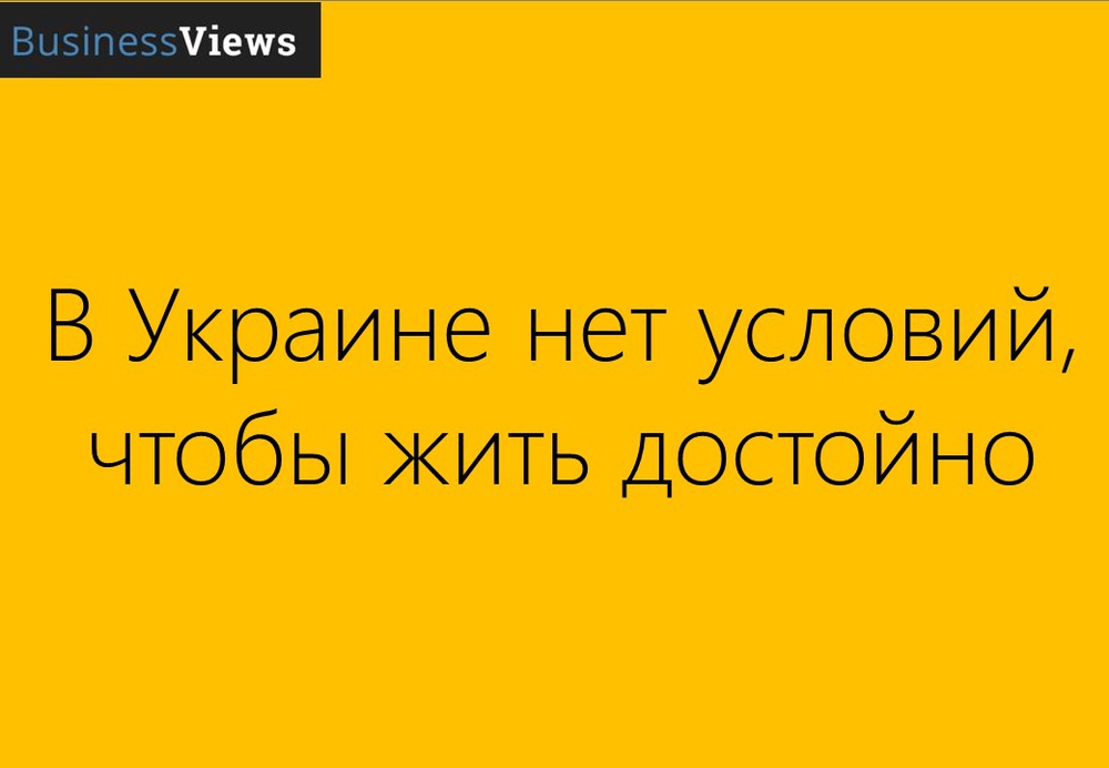 Украина — бедная, неэффективная страна, которая «выталкивает» лучших в поисках нормальных условий жизни и сама загибается от экономического идиотизма. Украина похожа на сломанный поезд без тормозов — нам дали толчок, мы куда-то едем, но куда — не знаем. Сначала мы едем вперед, а потом откатываемся назад. И на неведомой дороге может произойти всё, что угодно.