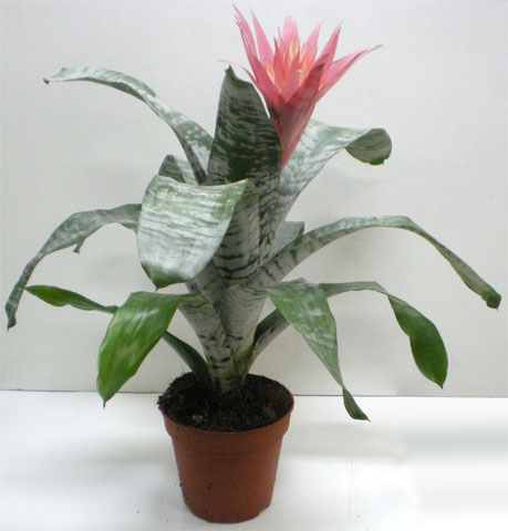 Одной из лучших для комнатного выращивания считается эхмея полосатая, растение с яркой выразительной внешностью и культура довольно крупных размеров. В комнатных условиях цветок вырастает до 1 метра в ширину. Отличительной особенностью вида является характерный серебристый налет на листьях. Наличие налета – абсолютно нормальное явление, а вот если налета нет – значит культуре не хватает солнечного света.