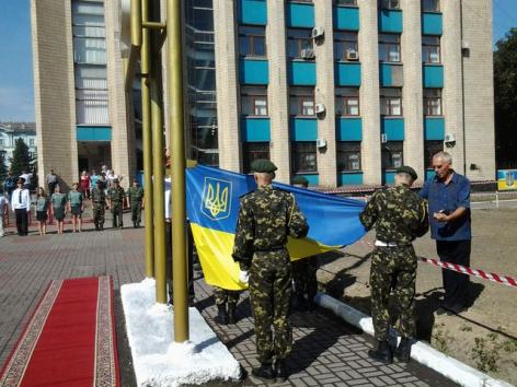 Официальная часть началась с митинга у памятника Тарасу Шевченко. Районные и городские власти во главе со Станиславом Сафроновым возложили к нему цветы. Сафронов отметил, что все невзгоды, которые сейчас взвалились на плечи украинского народа, мы обязательно преодолеем и добьемся лучшей жизни. Актеры театра имени Леси Украинки показали патриотический концерт для всех присутствующих. После этого горожане отправились к мэрии, где было запланировано поднятие флага.