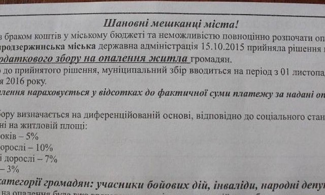 Жителей города, от имени городской государственной администрации, пугают дополнительным сбором за отопление.