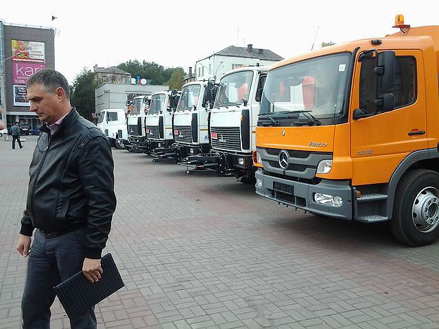На площади у городского совета состоялся показ коммунальной техники, закупленной для нужд города.