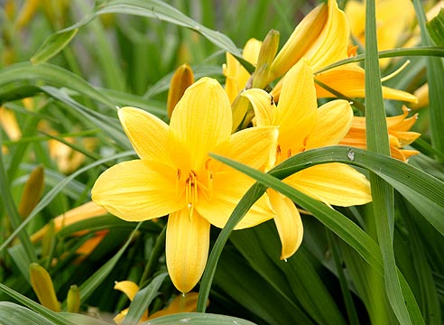 В целом, самыми популярными считаются желтые и оранжевые лилейники. Первые отличаются достаточно жесткими листьями, ширина которых, к слову, достигает 3-4 см. Цветоносы желтых лилейников обычно несимметричные и это придает растению излишней оригинальности. Культура вырастает до высоты в 1 метр, а цветки достигают диаметра более 12 см, цветет растение в июле и очень приятно и сильно пахнет.
