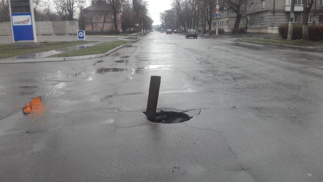 Сотрудники ГАИ утром 4-го апреля выявили факт повреждения дорожного покрытия на проспекте Пелина.
