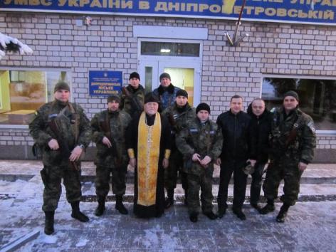 16 февраля, в здании городского управления милиции, протоиерей Украинской православной церкви Киевского патриархата благословил парней, вручил им иконы и окропил святой водой.