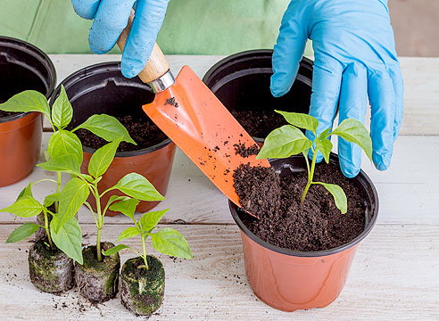 Учитывая, что сеянцы все равно нужно будет доращивать в горшках, для посадки семян перца на рассаду подойдут небольшие торфяные таблетки диаметром 3 см. Поместите нужное количество таблеток в лоток и залейте их теплой кипяченой водой. При набухании таблетки увеличивают объем в пять раз и превращаются в столбики. Если таблетки разбухли не полностью, добавьте еще воды до полного набухания. После того, как таблетки перестанут впитывать воду, слейте из лотка ее излишки.