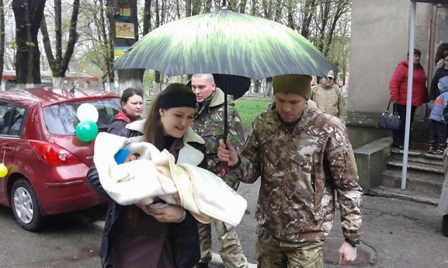 И вот, у Героя родился сын, которого назвали Андреем. Такое событие не могли оставить без внимания и боевые побратимы Эдуарда и жители города. Екатерину Панченко с новорожденным сыном у родильного дома встретили сослуживцы Эдуарда и неравнодушные граждане. Екатерина поблагодарила всех пришедших за заботу и внимание.