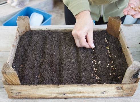 Для посадки следует подготовить надлежащий состав грунта. Наполните ящик смесью из дерновой или садовой земли, торфа и песка (1:2:0,5 части). Хорошо разровняйте по всей поверхности и уплотните почву с таким расчётом, чтобы бортик ящика возвышался над ней на 2-3 см. После этого надо разметить бороздки на расстоянии 5-6 сантиметров. Сверху засыпьте посевы почвенной смесью слоем около 1 см. Уплотните поверхность при помощи дощечки. Если погода сухая, то немного полейте, но следите, чтобы семена не всплыли. Те семена, которые все-таки всплывут, нужно присыпать небольшим количеством почвы. В сырую погоду полива не требуется.