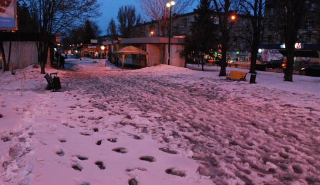 Абсолютно весь центр города — тротуары, площадки перед магазинами, скверы — покрыты водой и снежной «кашей». От «добрых» пожеланий граждан городским чиновникам, наверное, уже икается. Можно сколько-угодно обвинять владельцев магазинов в том, что они не чистят снег, но ведь этим не занимаются и коммунальщики. Проверяющие от мэрии требуют убирать прилегающую территорию до самого бордюра дороги. При этом они не учитывают того, что коммунальная техника сгребает снег с с проезжей части… на тротуар. Ситуация удивительная — торговцы все отгребают на дорогу, коммунальщики возвращают убранное назад.