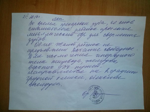 Мы уже сообщали о ЧП, произошедшем в государственной стоматологии. Родители сообщили, что после лечения зуба у ребенка в желудке оказался бур небольшого размера.