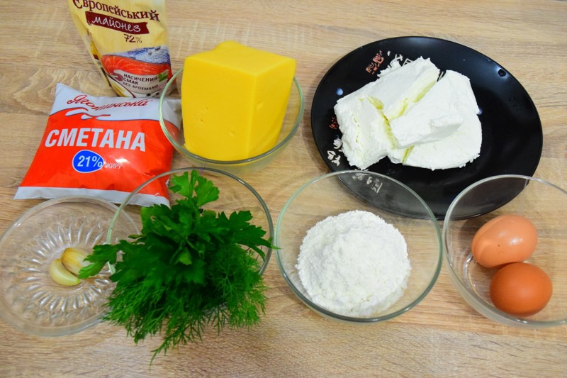 Для теста смешиваем творог (400 грамм), яйца (2 шт), мука (3 ст. ложки)