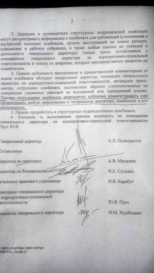 В сети опубликовали документ, которым хотят «закрыть рот» работникам комбината