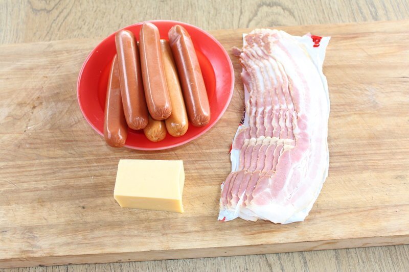 • 12 ломтей бекона (из расчета по 2 шт. на 1 сосиску)