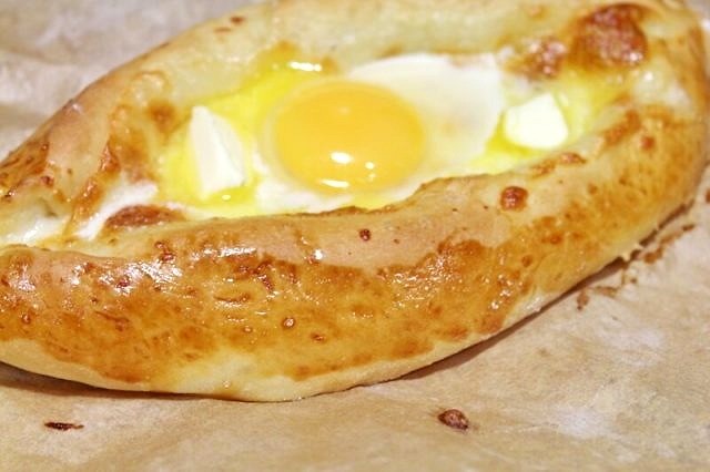 Вынимаем хачапури из духовки, разбиваем в начинку яйцо и отправляем в духовку еще на 2-3 минуты.