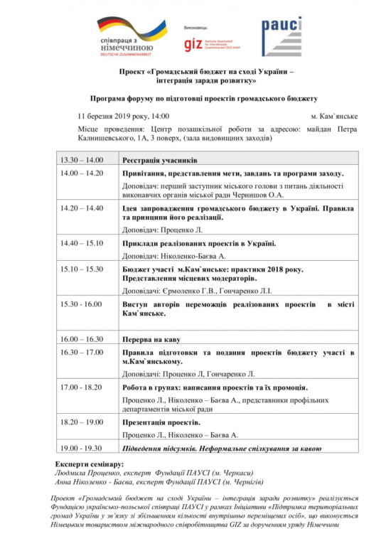 В 2018 году жители города проявили высокий уровень активности во время подачи общественных проектов. Поэтому, учитывая высокий спрос на бюджет участия, городской совет совместно с Фондом польско-украинского сотрудничества ПАУСИ проводит общегородской Форум по написанию общественных проектов.
