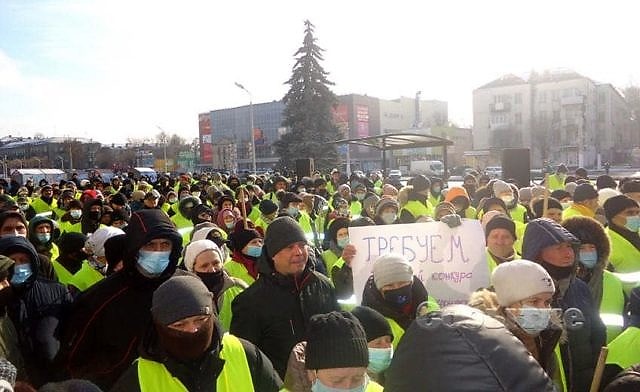 Перед началом митинга можно было заметить, что часть дворников приходит самостоятельно, а вторую привозит транспорт организованными группами. Как выяснилось, организованные группы дворников – это поддержка из «Экологии Д» из Днепра.