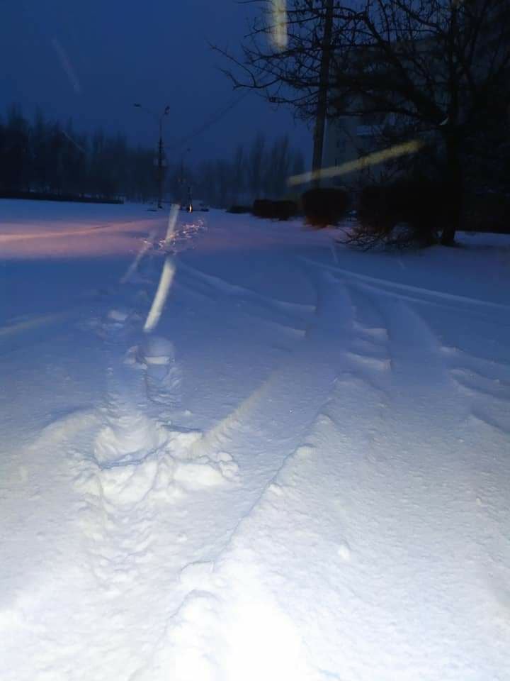 Жители города вынуждены были идти на работу ранним утром по засыпанным снегом улицам, протаптывая самостоятельно дорожки.